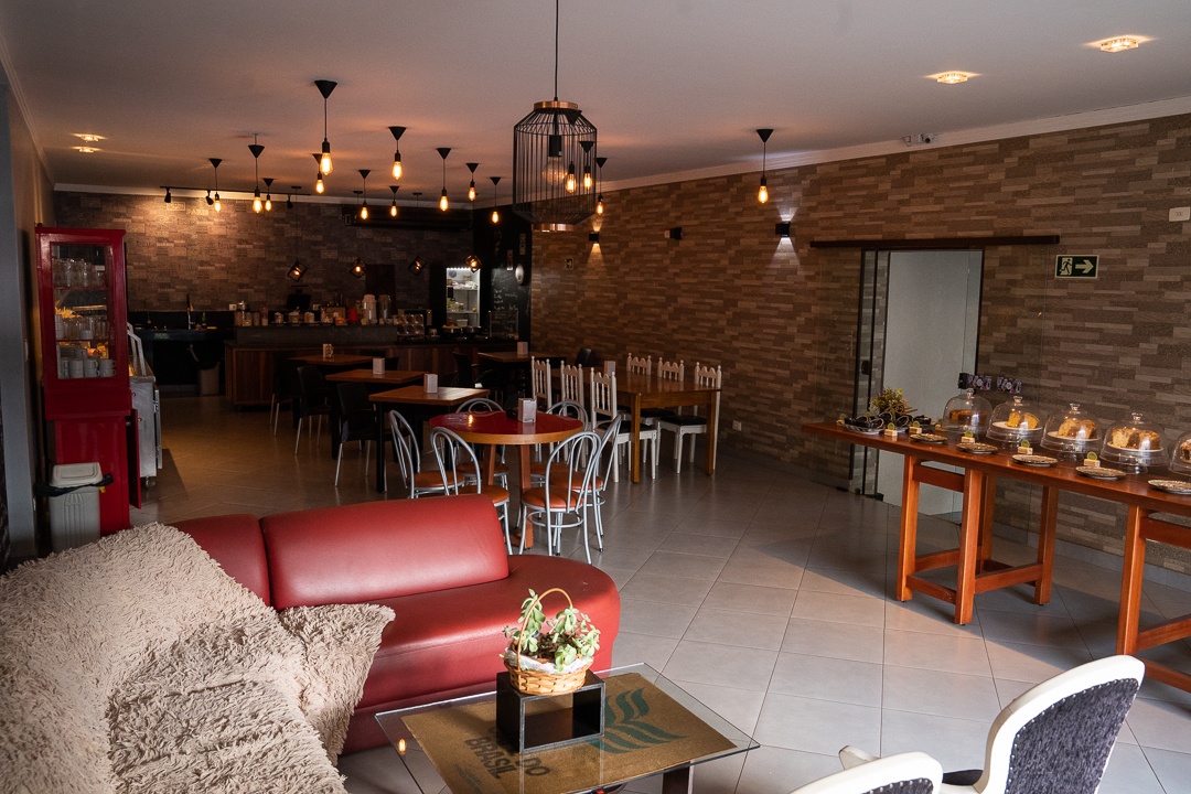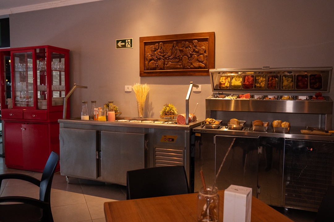 Oferecemos um delicioso buffet de café da manhã, bolos caseiros preparado pela nossa equipe, além de variedade de frutas, pães, frios, bem como uma seleção de bebidas quentes e frias.